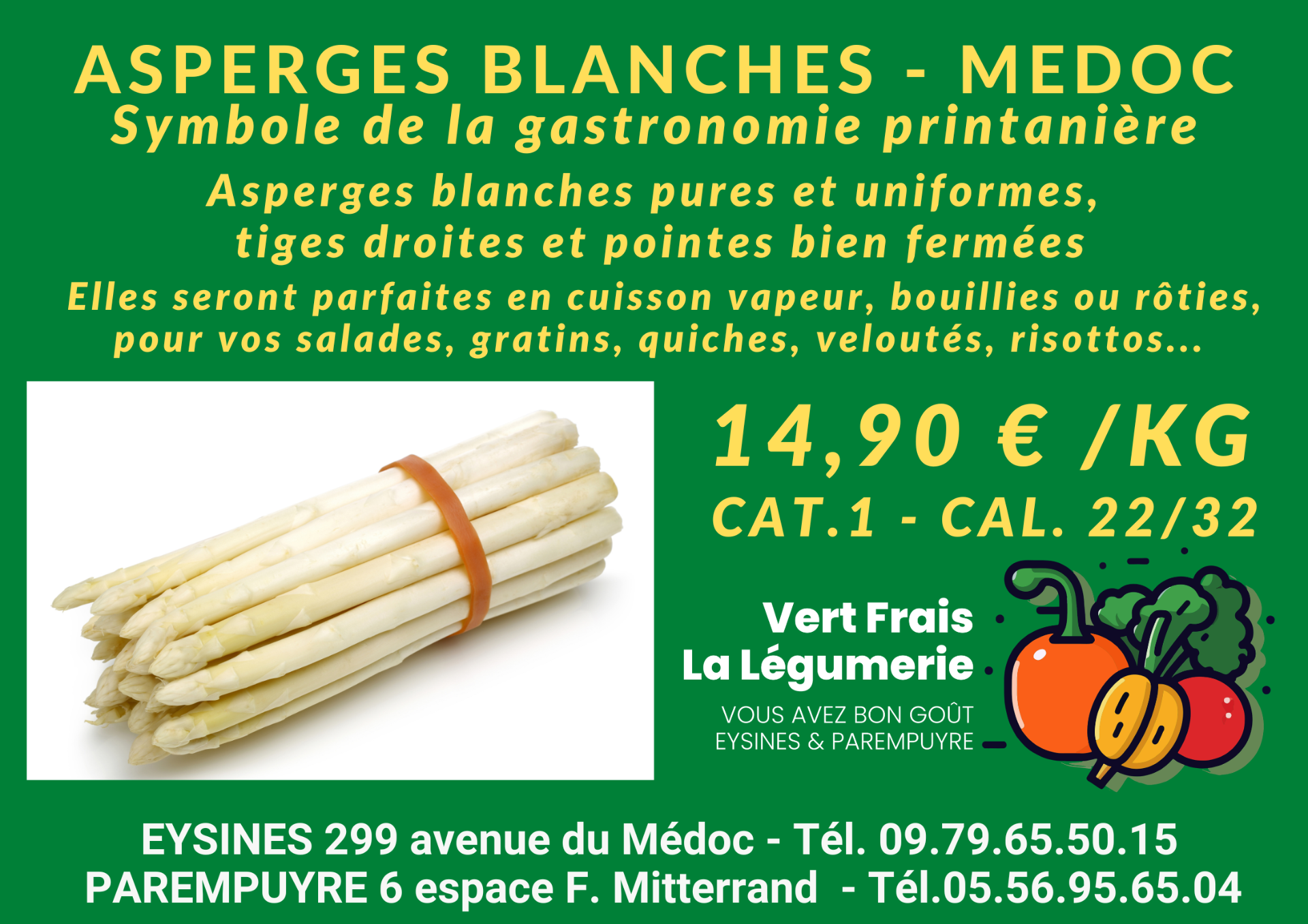Asperges blanches - 1kg - Cal. 22+ - Cat.1 - France Médoc