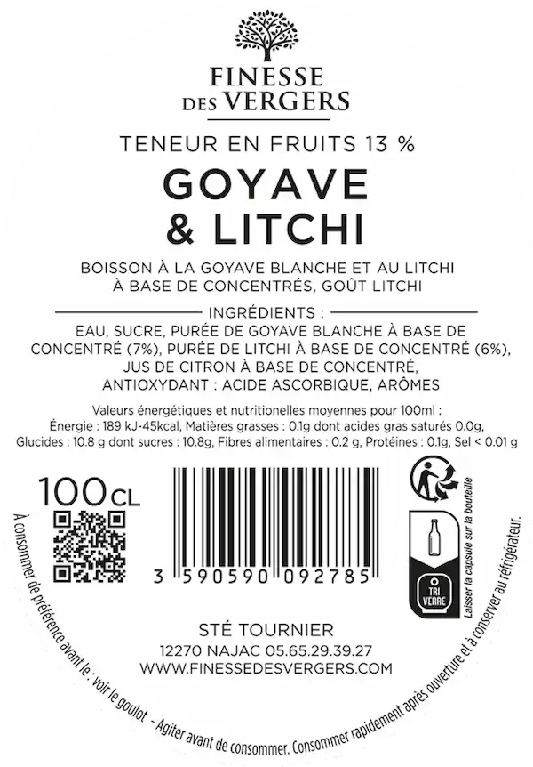 Eau, purée de goyave (25%), sucre, acidifiant : acide citrique.