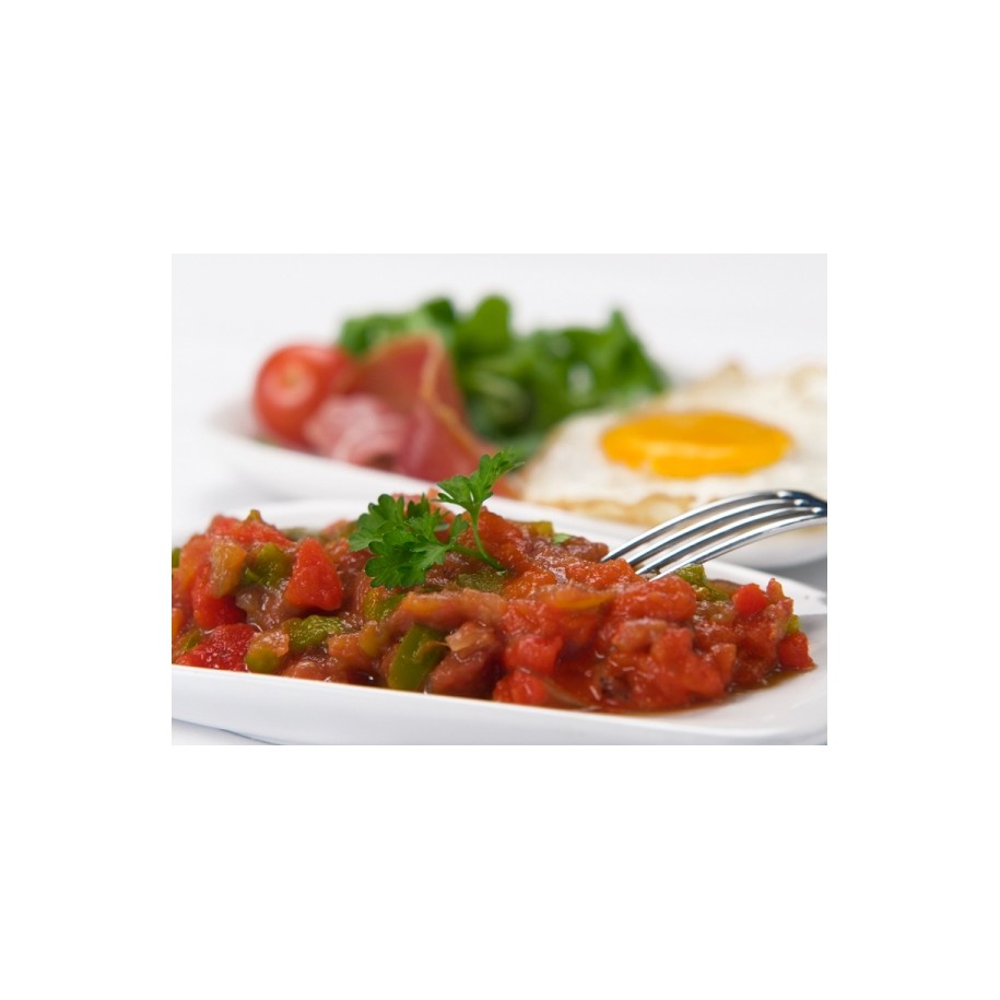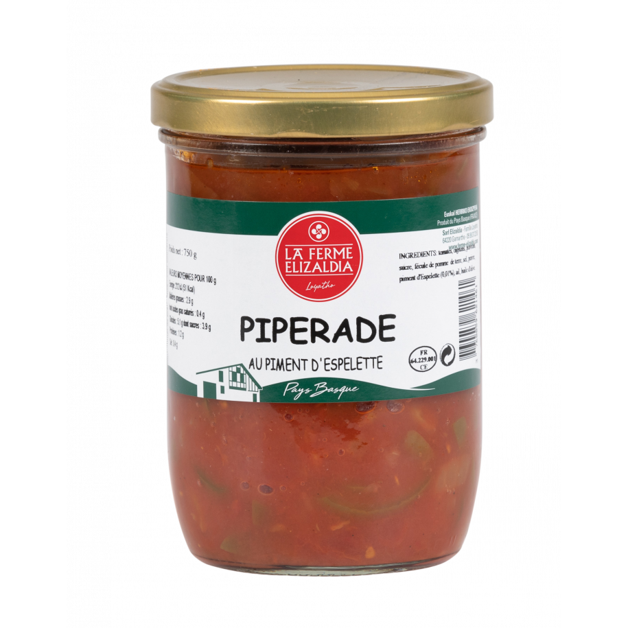 Piperade Basque légèrement relevée au piment d'Espelette 750g. Origine France Pays Basque.